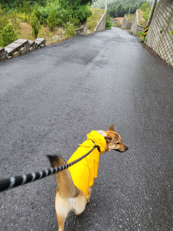 방금 병원 다녀왔지만, 비가와도 산책 다녀왔습니당 🫡