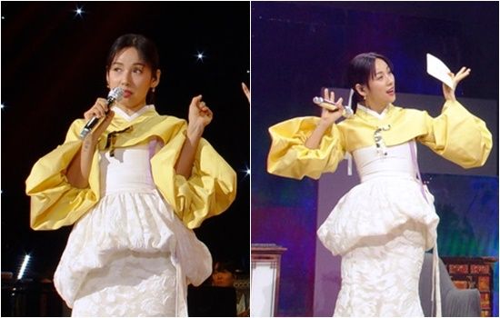 앞서도 이효리는 지난해 2월 KBS 2TV '더 시즌즈-이효리의 레드카펫' MC 당시 한복 의상으로 화제의 중심에 선 바 있다. 설 명절 특집을 맞아 이효리는 길이가 짧은 노란색 한복 저고리 아래 독특한 스타일의 흰색 치마를 매치해 입었다.