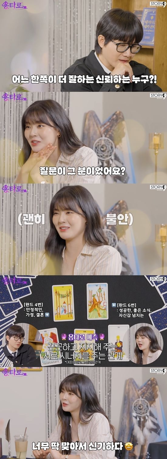 당황한 이용빈은 "아니다. 대표님이랑 보는 거다. 무슨 생각하는 거냐"라고 얼버무리며 이선빈에게 1장을 더 뽑으라고 제안했다. 이선빈이 추가로 뽑은 카드를 확인한 이용빈은 "(서로) 끈끈하고 엄청 지지해 주고 확실히 시너지가 있다. 어떤 느낌인지 보고 싶었다. 잘되셨으면 좋겠다"라고 덧붙였다.