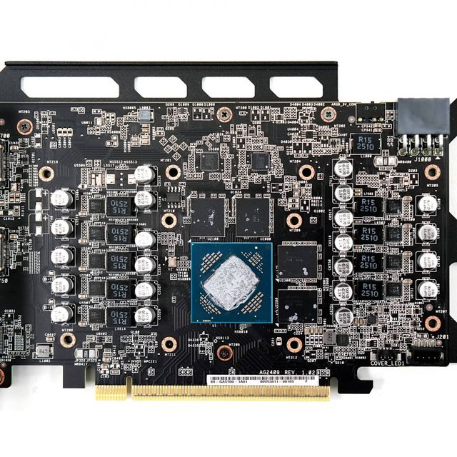 슈라우드 상단에는 직관적인 형태의 LED 인디케이터를 달았다. 작동 상태에 따라 LED 인디케이터가 다양한 빛을 내뿜는다. 그래픽카드 자체에 화려함을 강조한 부분이 없어 밋밋할 수 있지만, LED 인디케이터로 단조로움을 덜어냈다. LED 인디케이터는 원하지 않을 경우, 후면 스위치로 비활성화할 수 있다.