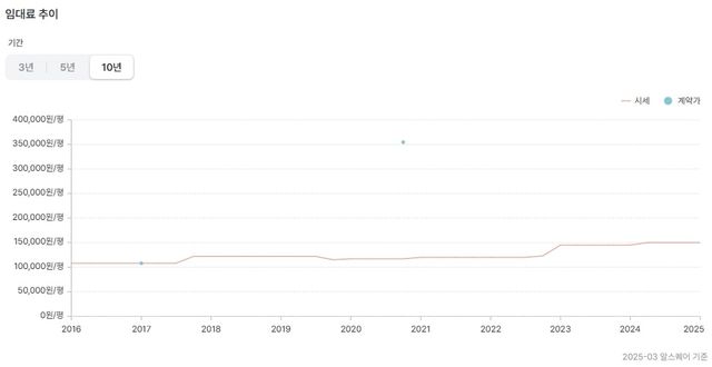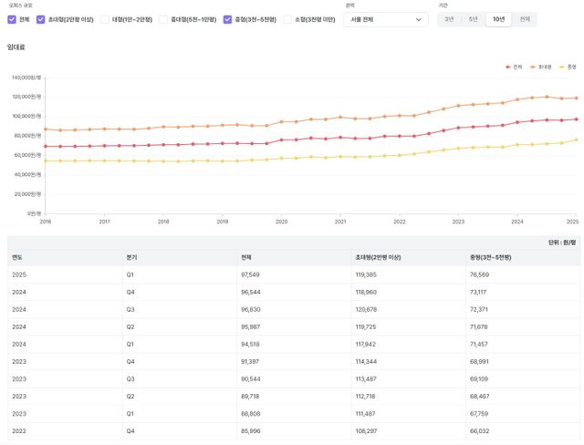 GFC의 최근 10년 임대료 추이, 꾸준히 우상향함을 알 수 있다