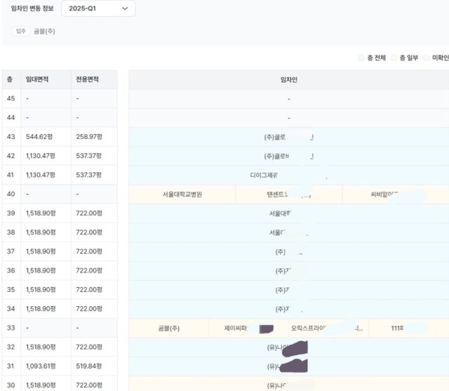 류강민: 네. 그런데 수천억짜리 빌딩, 때로는 조 단위를 거래하려면 정말 디테일하게 봐야겠지요. 그래서 정말 별걸 다 볼 수 있습니다. 등기에 나오는 정보는 기본이구요. 필요하면 바로 등기부등본 열람도 가능해요. 또 몇 층에 누가 들어와 있는지 임차인 정보도 제공해요. 이런 작은 것 하나하나가 대형 빌딩 거래에는 신경 써야 할 정보이니까요.