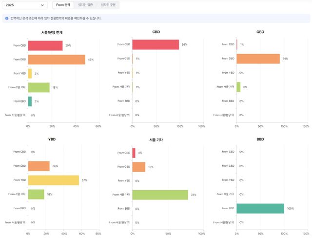 서울 어느 권역에서 어디로 이동했는지도 보여준다