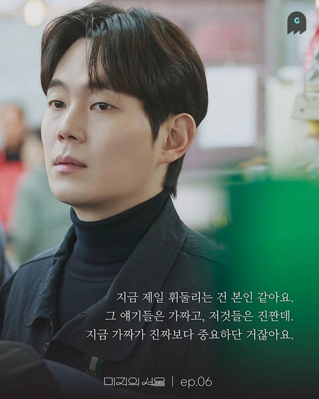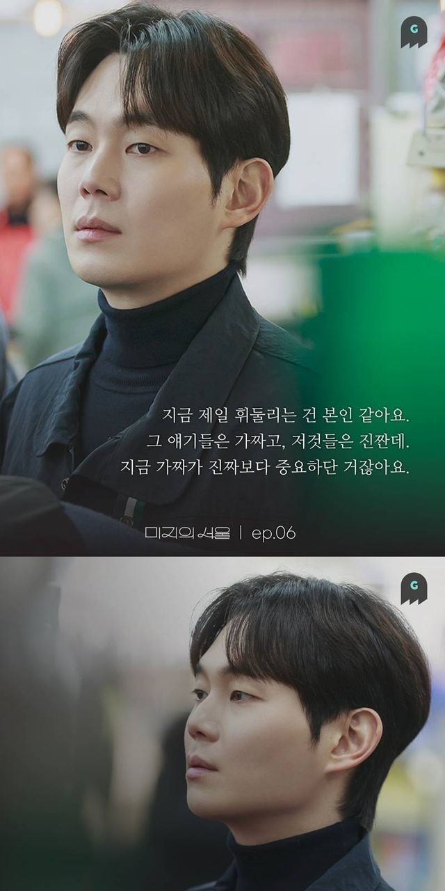 # 6회 "가짜가 진짜보다 더 중요하단 거잖아요, 지금”