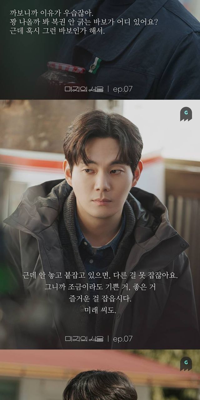 # 7회 “조금이라도 좋은 거, 기쁜 거, 즐거운 걸 잡아요. 미래 씨도”