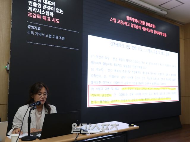 최윤진 감독은 26일 서울 종로구 한 회의실에서 연 기자회견에서 ‘소주전쟁’ 감독해고 사건에 대한 입장을 밝혔다.