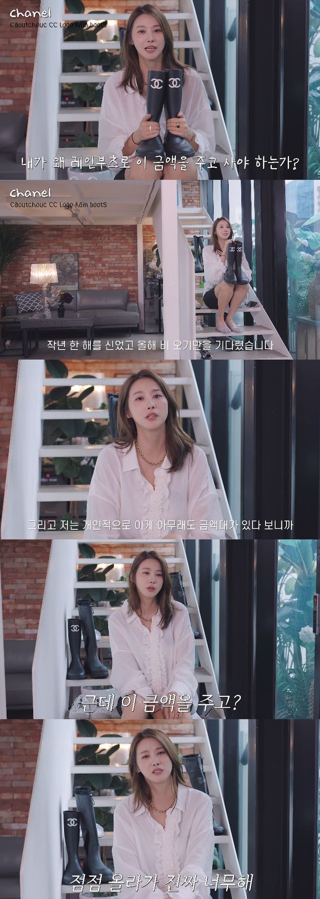 네 번째 신발로 샤넬 레인부츠를 꺼내든 유인영은 "저도 '내가 왜 이 금액을 주고 사야 하는가'에 대해서 정말 많은 고민을 하고, 정말 많은 생각을 하고, 고민 고민 해서 구입했다"면서 "작년 한 해를 신었고, 올해 비 오기만을 기다렸다"고 전했다.