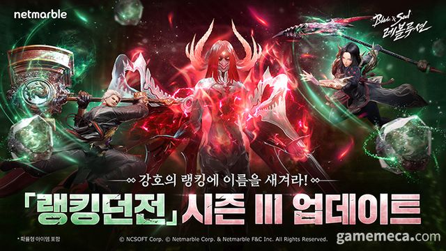 넷마블은 넷마블에프앤씨가 개발하는 모바일 MMORPG 블레이드앤소울 레볼루션에 랭킹 던전 시즌 3를 업데이트했다.
