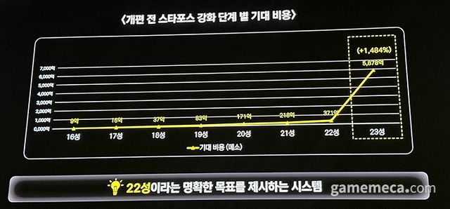 ▲ 그러나 개편 후에는 강화에 들어갈 비용이 상대적으로 완만하게 오르도록 개편했다 (사진: 게임메카 촬영)