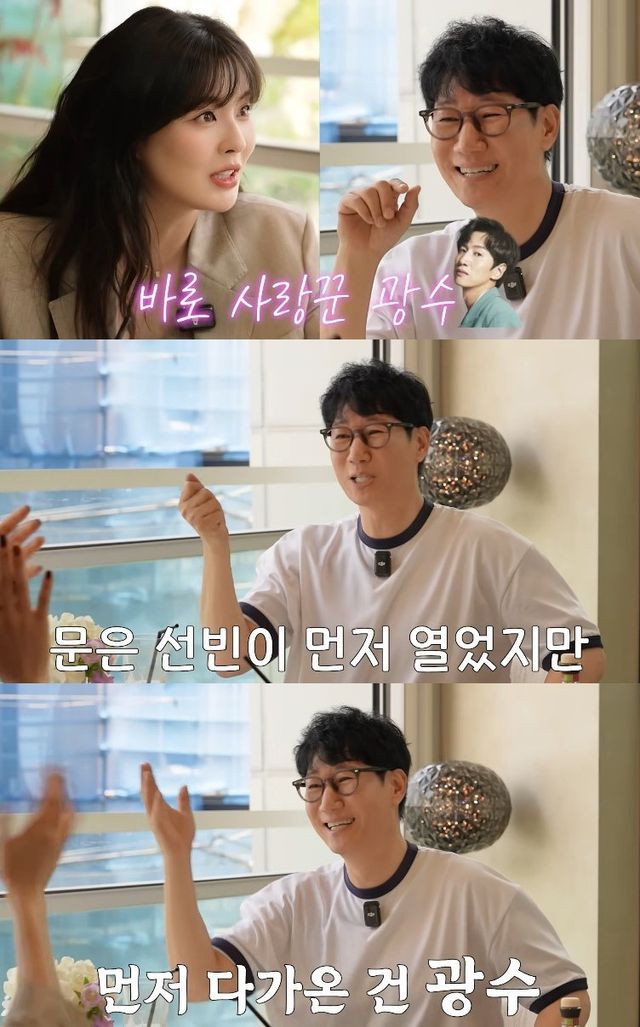 그러면서 이선빈은 "중요한 건 (연인) 관계를 위해 부단히 노력한 건 그다"라고 강조했고, 이에 지석진은 "문은 네가 먼저 열었지만, 대시는 광수가 밀어 붙였다. 이건 팩트다. 저도 안다"라고 인정했다.
