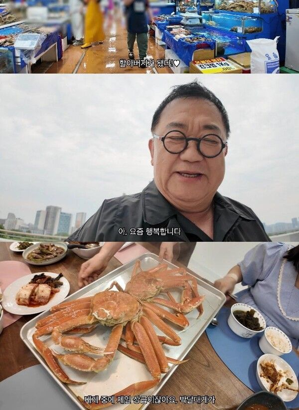 이후 이용식이 남몰래 준비한 대게를 본 이수민은 "애를 낳으니까 집에서 이걸 먹네"라고 너스레를 떨었고, 원혁은 "박달대게가 대게 중에 제일 상급이지 않냐"고 감탄했다. 가장 먼저 대게를 맛본 이수민은 두 눈을 크게 뜨며 "대박이다"고 말했고, 이용식은 "이게 키토산이 풍부하다더라. 모유에도 그렇고 면역력도 그렇고 칼슘의 버거다"라고 자랑스러워하며 손녀와 딸을 향한 애정을 드러냈다.