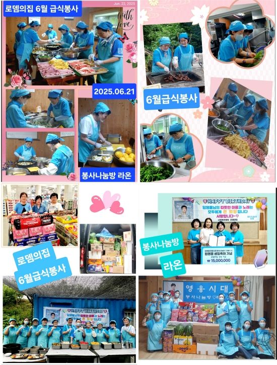 '라온'은 "원생들이 좋아하지만 조리 시간이 오래 걸려 자주 준비하기 어려운 김밥, 새우동그랑땡, 잡채, 과일샐러드 등을 제공하느라 매우 바빴지만, 배식 시간에 맞추기 위해 최선을 다했다"라고 전했다. 이어 "전날 폭우 속에서 장을 봤는데, 당일엔 비가 그쳐 야외 숯불구이가 가능했다"라며 "원생들이 좋아하는 음식들을 맛나게 먹으며 행복해하는 모습에 무척 뿌듯했다"라고 전했다.