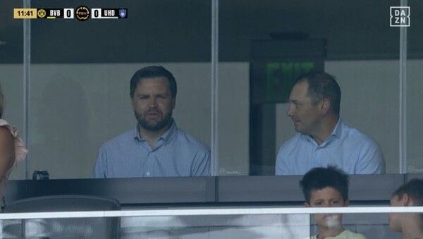 이날 중계 화면에는 셔츠 차림의 밴스 부통령이 아내 및 지인들과 VIP석에서 경기를 관람하는 모습이 포착됐다.