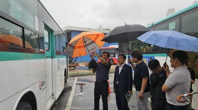 이날 현장점검은 국토교통부 스마트시티 규제샌드박스 실증사업의 일환으로, KD운송그룹 평안운수 소속 시내버스 20대에 부착된 미세먼지 측정 및 저감 장치를 직접 확인하고 추진 현황을 확인하기 위해 마련됐다.