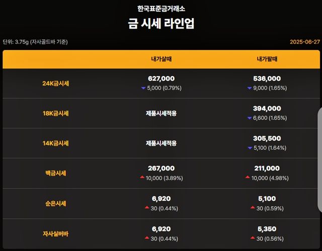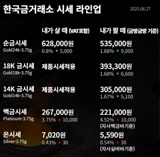 순금(24K) : 매입가 62만 8000원 / 매도가 53만 5000원
