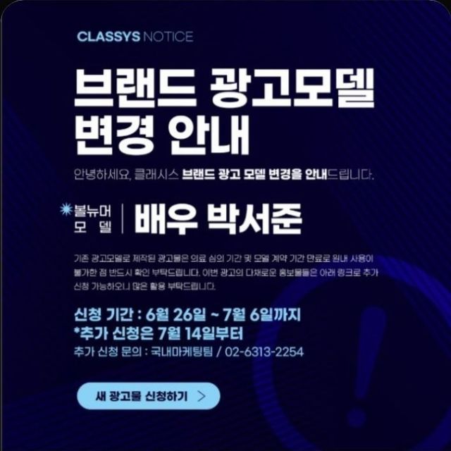 27일 관련 업계에 따르면 최근 클래시스의 고주파 리프팅 장비인 볼뉴머의 모델이 배우 박서준으로 변경됐다.