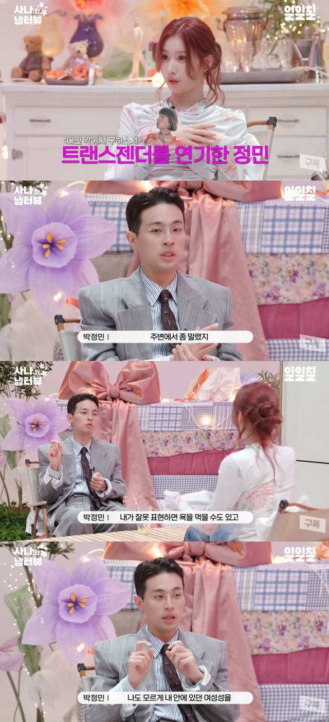 이날 사나는 박정민이 영화 '다만 악에서 구하소서'에서 트랜스젠더를 연기했던 것을 언급했다.