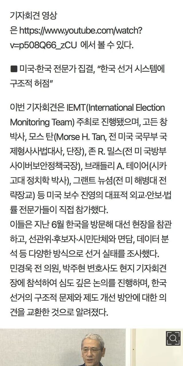 국제선거감시단 기자회견 "대한민국 부정선거 실태 보고"