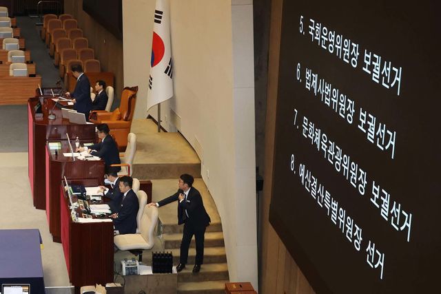 공석이던 국회 상임위원장 네 자리가 더불어민주당 소속으로 채워졌다. 국민의힘은 합의 없는 선출은 무효라며 강하게 반발했다. 나경원 의원은 김민석 국무총리 후보자 지명 철회와 법제사법위원장 반환을 요구하며 농성을 시작했다.
