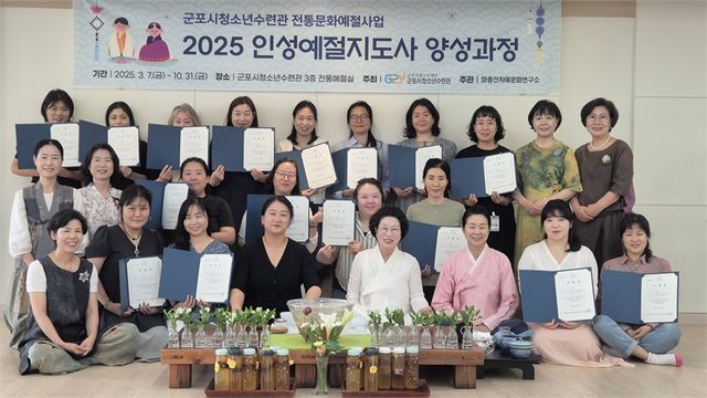 (군포=뉴스영 공경진 기자) (재)군포시청소년재단 군포시청소년수련관이, 지난 27일 인성예절지도사 양성과정 중급 과정 수료식을 열고 17명의 수료생을 배출했다. 이번 과정은 3월부터 진행된 초급·중급·고급 3단계 교육과정 중 두 번째 단계로, 매주 금요일 주 1회씩 진행됐다.