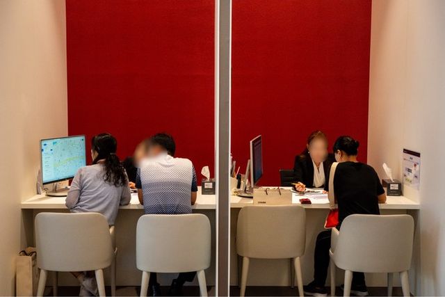 방문객들이 분양 상담을 받고 있다. = 김주환 기자