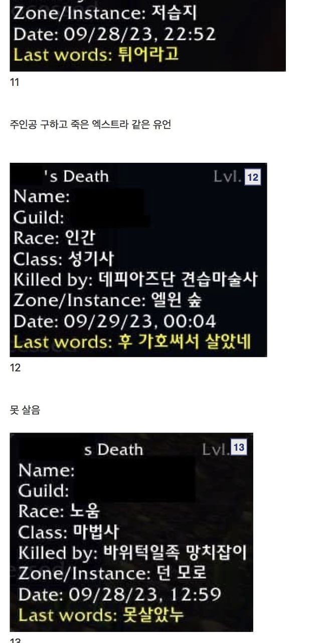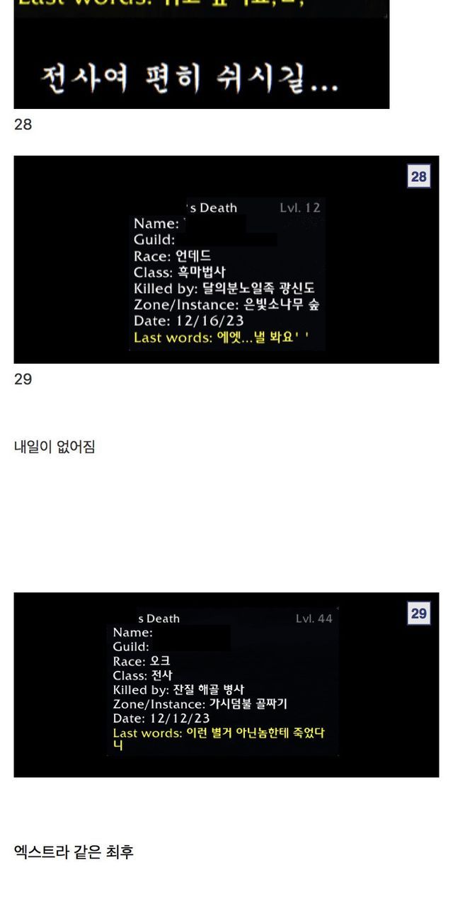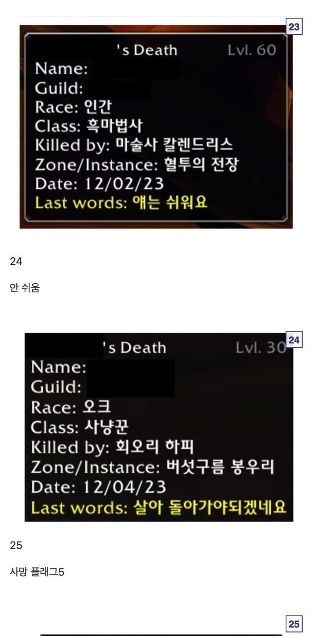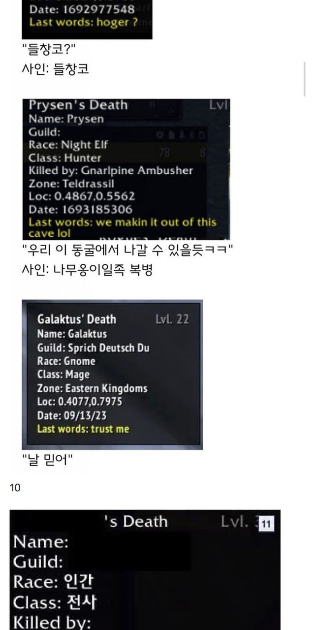 월드 오브 워크래프트 유언 모음집