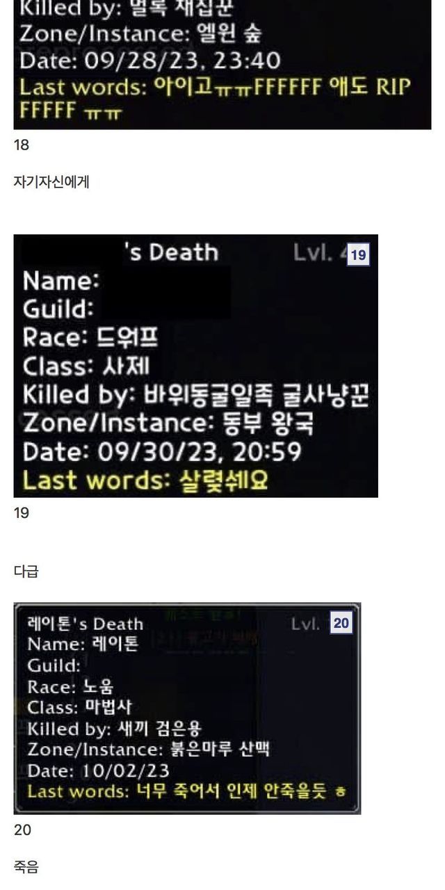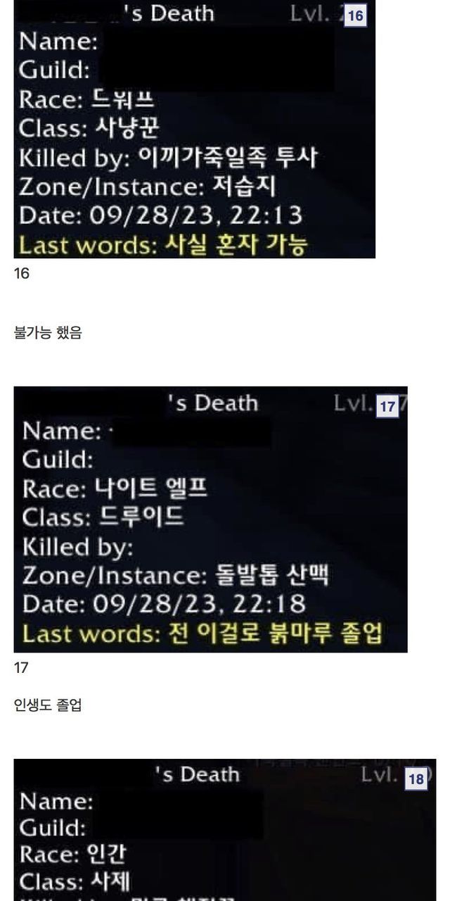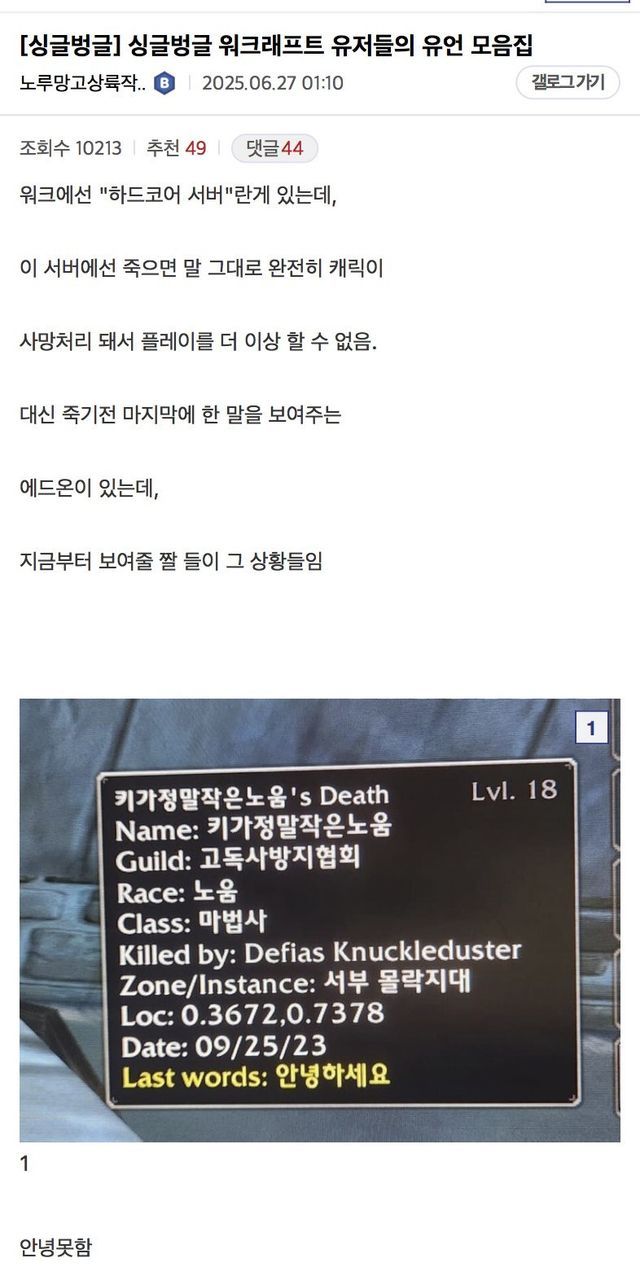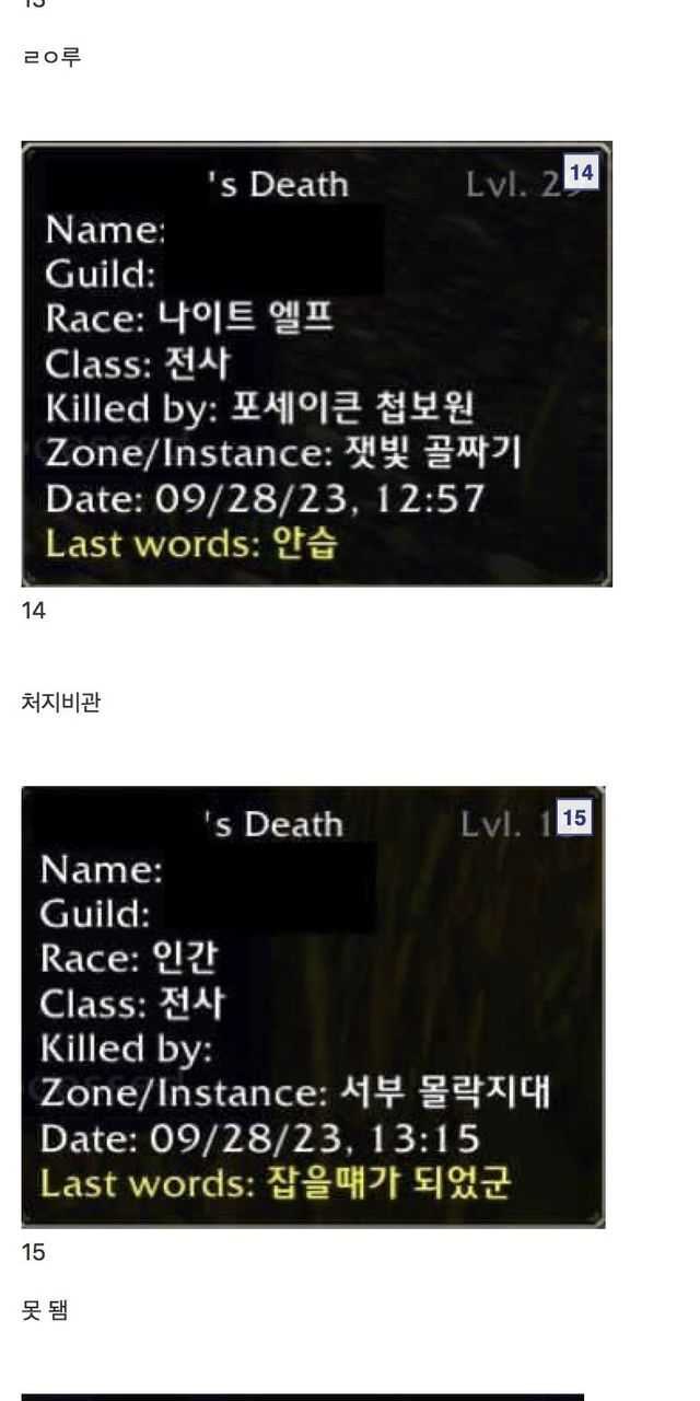 월드 오브 워크래프트 유언 모음집