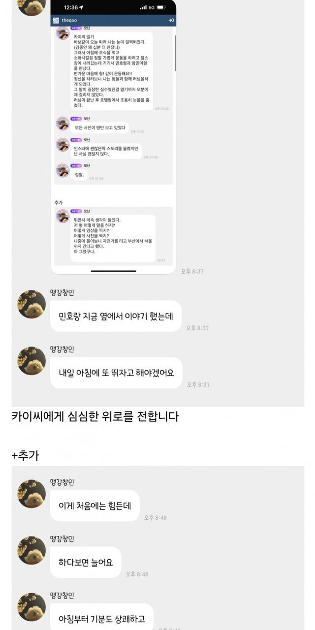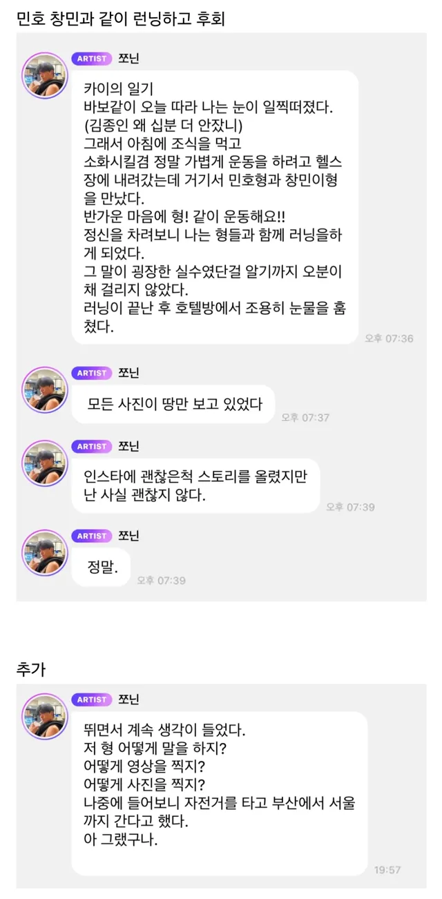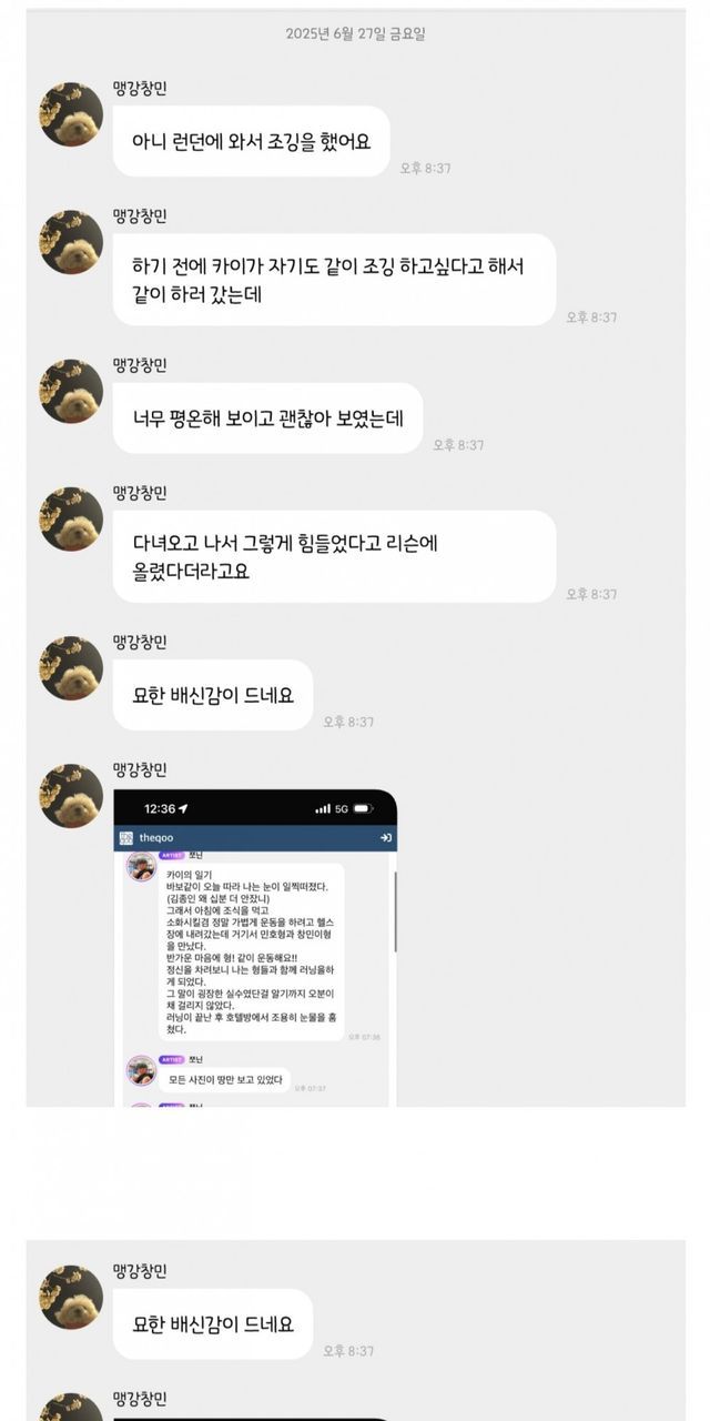 엑소 카이가 샤이니 민호와 동방신기 최강창민과 같이 런닝 후 버블을 올림