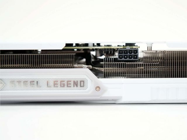 그래픽카드 후면에는 기판 휨을 방지하고 쿨링 성능에 도움을 주는 메탈 백플레이트가 장착됐다. 백플레이트에는 프리미엄 서멀 패드가 적용되어 열 방출을 돕는다. 여기에 화이트 테마에 맞춘 스틸레전드 디자인이 맞물려 심미적인 부분까지 챙겼다.