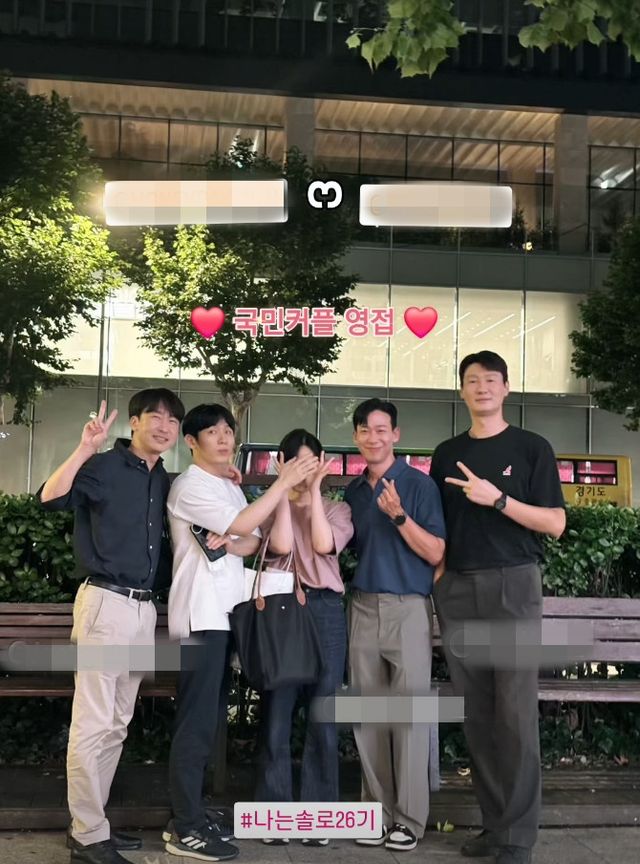 사진 속에는 영식과 현숙의 근무지인 판교에서 만난 듯한 26기 영수, 상철, 영철, 영식, 현숙의 모습이 담겨 있다.