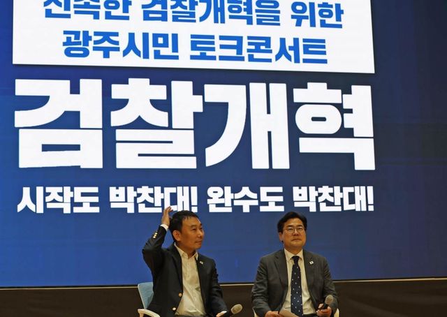 이날 '신속한 검찰개혁을 위한 광주시민 토크콘서트'에 함께 참여한 김용민 더불어민주당 의원도 검찰개혁 완수를 약속하며 박 전 원내대표에 대한 지지를 호소했다. 김 의원은 "헌정사상 첫 사례였던 안동환 검사 탄핵 당시 숨은 설계자는 박 전 원내대표"라며 "검찰 개혁을 정말로 끝낼 당사자"라고 치켜세웠다.