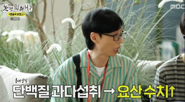 그러나 유재석과 하하, 주우재는 요산과 단백질 수치가 높다는 것을 우려했다. 유재석은 “단백질을 너무 많이 먹으면 요산 수치가 높아진다”라고 설명하며 “종국이가 예전에 탄수화물 말고 단백질만 먹었다가 통풍이 왔었다”라고 강조했다.