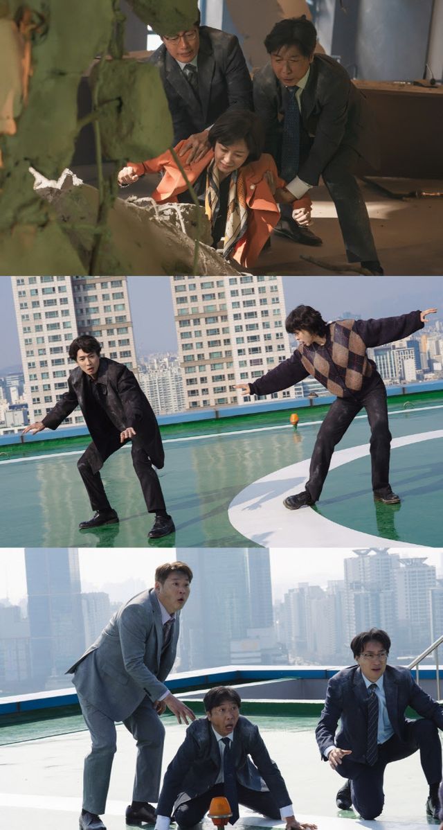 공개된 최종회 스틸컷에서 ‘무진스’ 3인방은 분진을 뒤집어쓴 채 충격적인 광경을 바라보고 있다. 콘크리트는 바스러지고 내부 철근이 듬성듬성 보이는, ‘순살’이 되어버린 빌딩은 금방이라도 무너질 듯 아슬아슬 긴장감을 자아낸다. 그 와중에 부상을 입은 문정은 의원과 혼란을 맞은 사람들의 모습이 눈길을 끈다. 대피한 옥상에서도 부실공사의 여파는 계속돼, 과연 흔들리는 건물에서 그들이 살아남을 수 있을지 최종회에 관심이 집중된다.