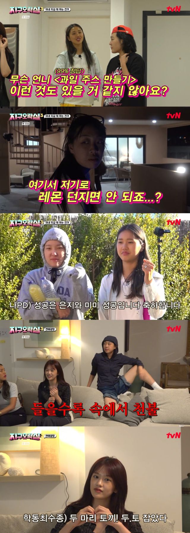 27일 방송된 tvN ‘뿅뿅 지구오락실3’ 10회에서는 이은지, 미미, 이영지, 안유진이 예측 불가 기상 미션 ‘자네 지금 뭐 하는 건가’부터 제작진의 연애 고민을 상담해주는 ‘이은지의 연애광장’까지 쉴 틈 없는 재미를 선사했다.