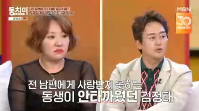 “이혼 당시 해줬던 조언은?”이라는 질문에 김정태는 “(이혼이)놀랍진 않았다. 내가 봤을 때는 크게 현숙이를 사랑하는 것 같지 않더라. 왜냐하면 본인을 보듬어주고 아껴주고 이런 사람이 필요한데 그런 느낌은 안 들더라. 저도 여동생이 있기 때문에 아는데 그렇진 않더라”고 친오빠 모드의 발언을 했다. 이에 김현숙은 “김정태 씨 이상형이 통통하고 똑똑한 여자인데 나랑 만나자 했더니 그건 또 싫다고 하더라”라고 말해 웃음을 자아냈다.
