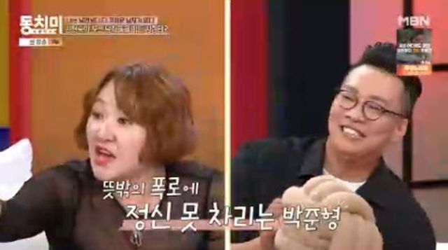 이에 김현숙은 “박준형이 갈갈이 활동 전 리포터로 오셨을 때 내가 장기자랑 하는 것 보고 ‘나랑 사귀자’고 했었다”라고 폭로하며 박준형을 놀라게 했다.