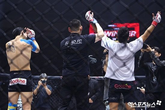 (엑스포츠뉴스 김유진 기자) 개그맨 윤형빈이 유튜버 밴쯔와의 종합격투기 대결에서 TKO승을 거뒀다.
