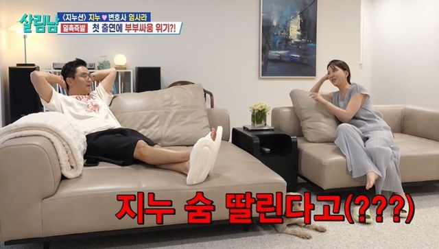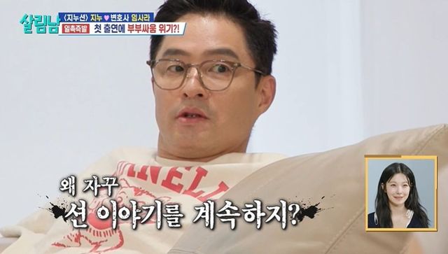 지누는 변호사인 아내에게 서류를 가져다준 후 여유롭게 식당으로 향했다. 임사라는 지누의 분량 걱정을 하며 전화했고, “방송에 나가는 것도 출연 계약 아니냐. 남편이 계약 이행 의무를 잘하고 있는지 체크했다”라고 밝혔다.
