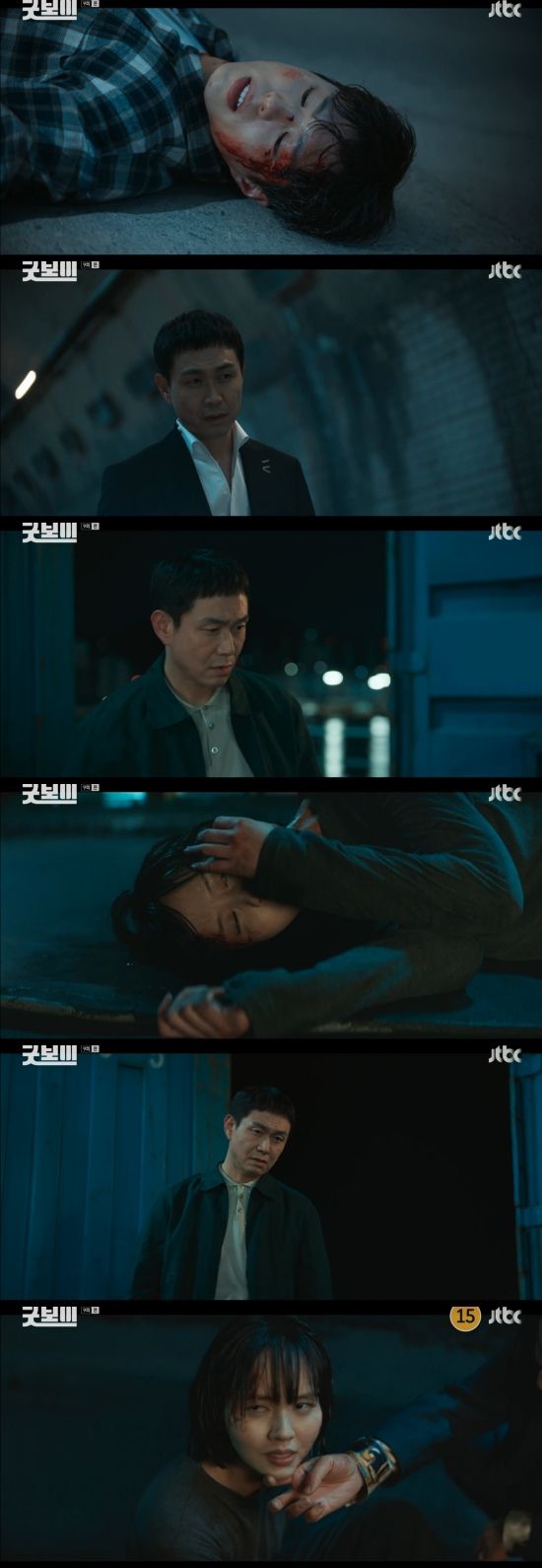 28일 방송된 JTBC 토일드라마 '굿보이' 9회에서는 김종현(이상이 분)이 레오(고준)가 쏜 총에 맞아 물에 빠진 모습이 그려졌다.