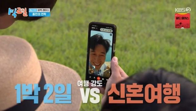 이후 김종민이 ‘옥탑방 문제아들’에서 획득한 커피차가 도착했다. 김종민은 영상으로 “마음은 다 주고 싶지만, 3명 주면 되나?”라고 밝혔다. 이에 게임으로 음료 마실 3명을 선발했다. 그러던 중 김종민에게 영상통화가 왔고, “지금 프랑스 앙티브다”라고 밝혔다. 딘딘이 “일정 타이트해? ‘1박’과 신혼여행 중 뭐가 빡세냐”라고 묻자 김종민은 “타이트하다. 여기”라며 속삭였다. 이어 김종민은 “그래도 행복하지?”란 질문에 “행복해”라면서 “시청률 떨어뜨리지 말고 열심히 해라”라고 당부했다.
