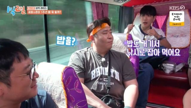 이날 충남 보령에서 점심 복불복 결과 멤버들은 조개구이를 획득했다. 조개구이를 먹던 멤버들은 연신 “조개만 먹냐. 조개구이 먹을 때 이런 적이 없다”라며 탄수화물을 원했고, 결국 해물칼국수, 라면, 음료수 등을 걸고 조개껍데기 뒤집기 대결을 펼쳤다. 이준과 문세윤이 성공, 각각 라면과 칼국수를 획득했다. 조세호는 주 피디가 재도전의 기회를 줬지만 또 실패, 딘딘의 원성을 샀다.