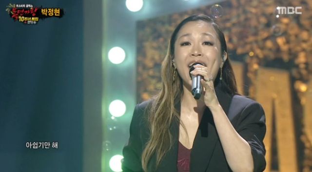 ‘작은 거인’으로 소개된 박정현은 키워드 ‘미스터리’ 무대에 올라 ‘편지할게요’를 불렀다. 올해 데뷔 28년 차를 맞은 박정현은 “이 공간에서 노래를 굉장히 많이 했는데 ‘복면가왕’ 무대라 떨리고 설레는 기분으로 노래할 수 있었다”고 소감을 전했다.
