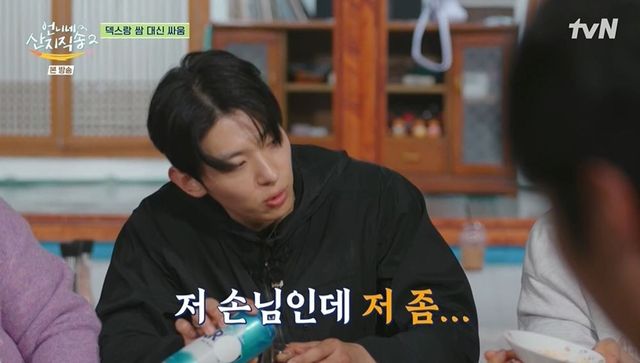 총 286kg을 달성한 오 남매는 19만 5천 원을 받았고, 삼겹살을 사서 집으로 돌아왔다. 염정아는 혼자 갓을 다듬겠다며 나머지 멤버들에게 쉬라고 했지만, 덱스는 채반을 가져다주고 쪽파를 씻었다. 덱스는 씻고 나온 임지연을 보며 “라떼는 저렇게 방에 못 들어갔는데 세상 많이 좋아졌네. 나랑 은진 누나는 5분 대기조처럼 정아 누나만 바라보고 있었다”라면서 염정아에게 “시즌 1, 2 멤버 중 누가 더 좋냐”라고 돌직구로 물었다.