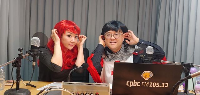 cpbc 평화방송 라디오 ‘장일범의 유쾌한 클래식’에서 매주 1회 ‘백재은의 행복한 오페라’ 코너를 진행하는 장일범(오른쪽)과 성악가 백재은. 두 사람은 코너의 주제와 관련된 코스프레 의상으로도 인기가 높다. 사진제공 | cpbc