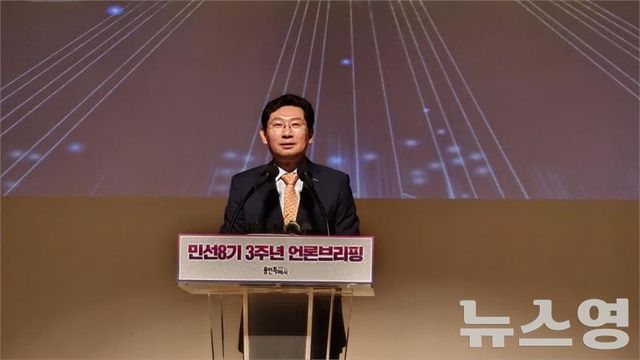 이상일 시장이 민선8기 3주년 언론브리핑에서 기자회견을 열고 있다./사진=뉴스영