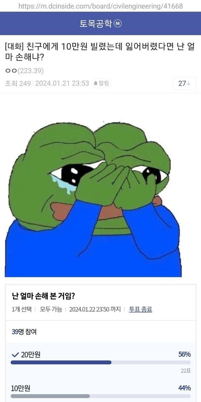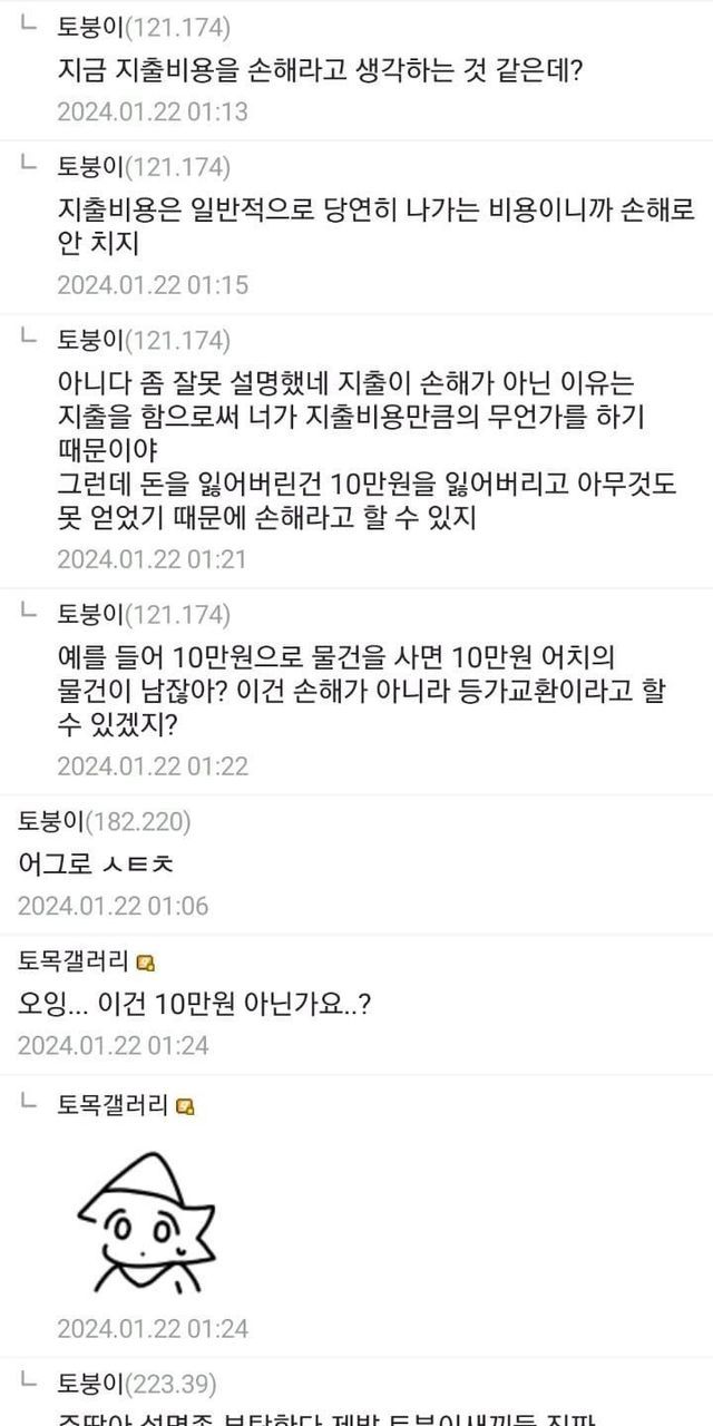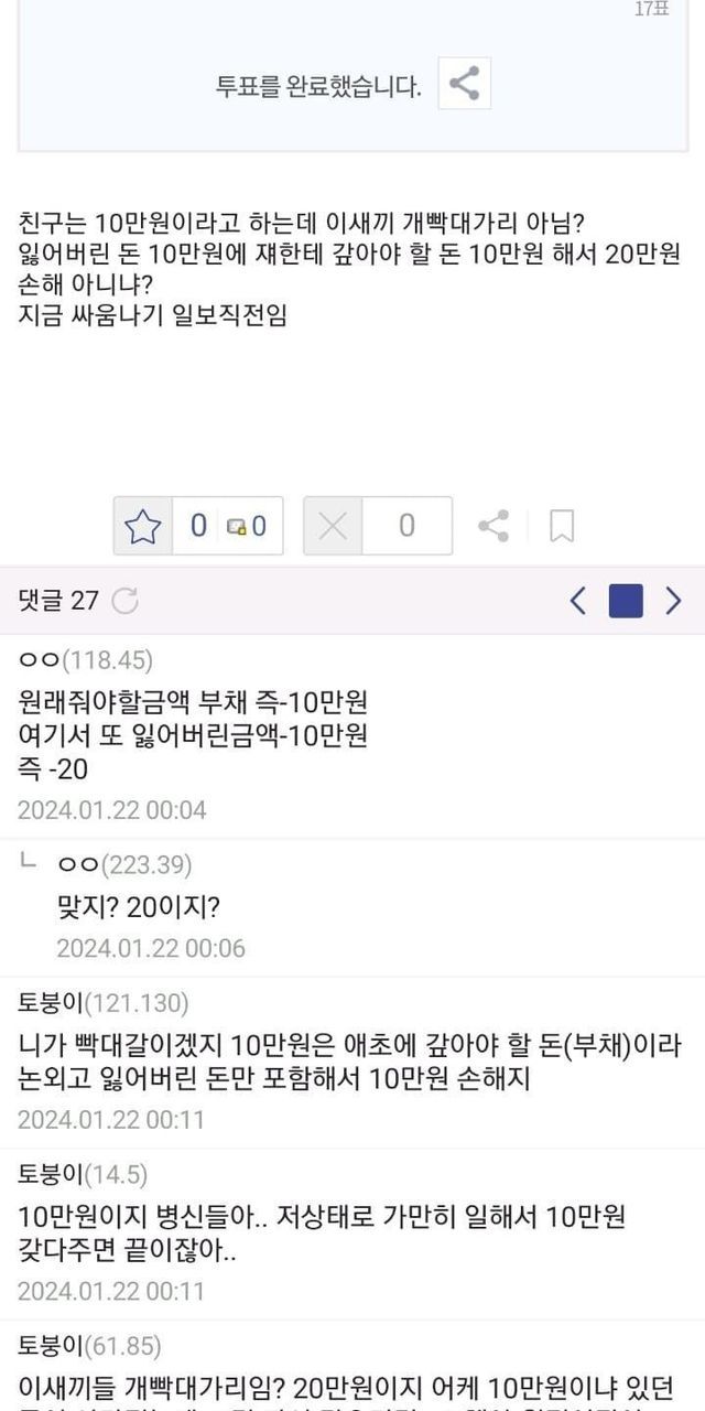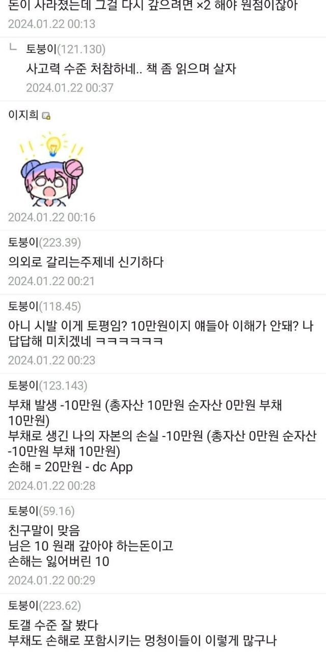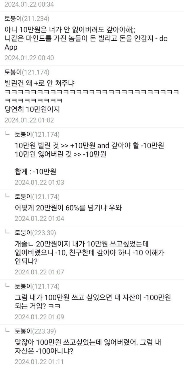 친구에게 10만원 빌렸는데 잃어버렸다면 난 얼마 손해냐?