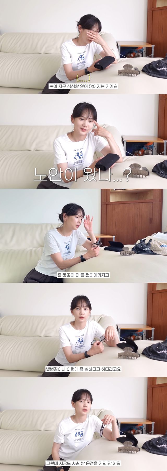 또 윤승아는 "지인들끼리 만나며 가끔 제 눈이 침침할 때 '혹시 너도 침침하니?'라고 물어본다"라며 "그래서 블루라이트 차단되는 안경들을 찾아서 쓰기 시작했다. 저는 눈 자체가 동공이 더 큰 편이라 빛 번짐이 좀 심하다고 하더라"라고 전했다.