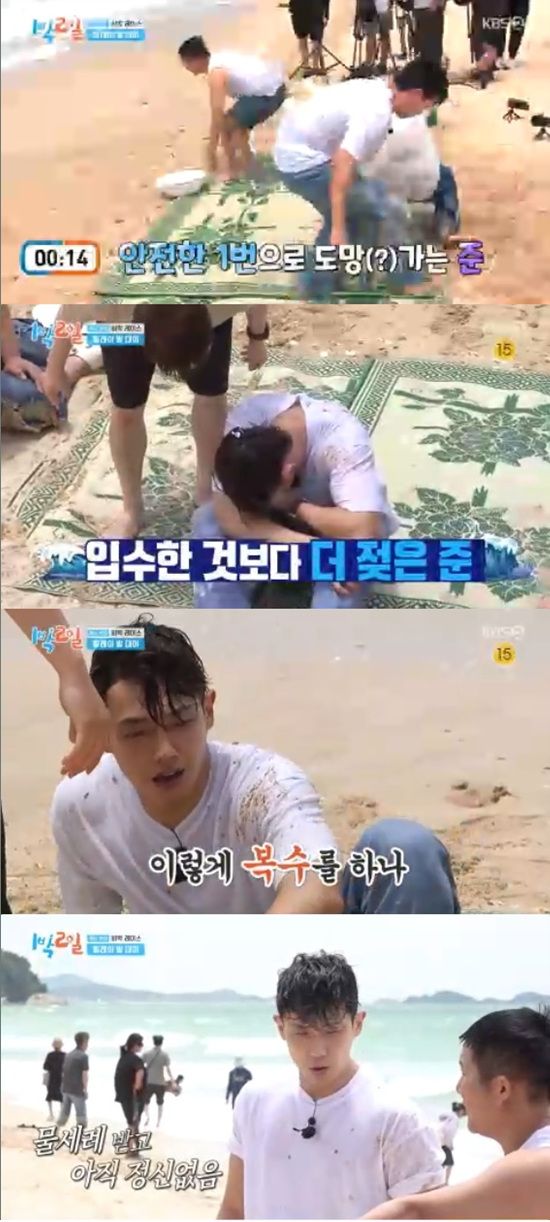 29일 방송된 KBS 2TV '1박 2일 시즌4'에서는 이준이 물바가지 3연타를 맞는 모습이 전파를 탔다.