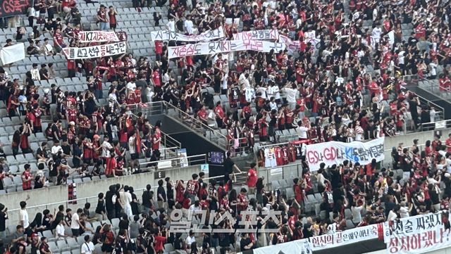 서포터석에 다수 걸개가 걸렸다. “전술 짜랬지 정치하랬냐?”, “헌신의 끝은 예우 아닌 숙청”, “자존심도 못지KI는 무근본 구단”, “굴러온 돌이 없앤 우리의 KI댈곳”, “뼈대 없는 GS축구단”, “김기동 OUT”, “GS나 GD나 KI둥 뽑는 게 팀 컬러” 등 구단과 김기동 감독을 비판하는 현수막이 서포터석을 가득 메웠다.