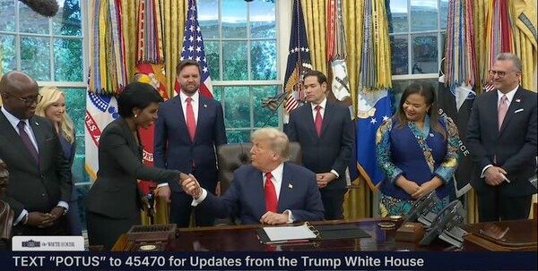 행사가 시작되면서 백악관 대변인 캐롤라인 레빗은 아프리카 출신으로는 유일한 백악관 출입기자라면서 하리아나 베라스를 소개했다. 이어 베라스가 발언을 원한다고 하자, 트럼프 대통령은 그녀를 자신의 옆으로 오도록 했다.